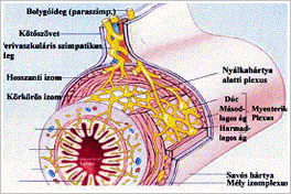 Az emlősök bélidegrendszerében a neuronok sűrűsége 3-10 ezer neuron/cm2, mely kb. megegyezik a gerincvelőben található neuronok számával, így a bélidegrendszer "harmadik agyként" is felfogható. Az elvégzett vizsgálatok igazolták, hogy a nyúl plexus myentericusában nincsenek szerotonin tartalmú, ill. termelő sejtek, ugyanakkor a plexus myentericus egyes idegi elemei mégis képesek külső szerotonin felvételére. A preparátumon kirajzolódó füzérszerű megvastagodást tartalmazó, a sima izomzatot gazdagon beidegző rostok bebizonyították, hogy a szerotonin a nyúlbélben funkcionális jelentősséggel bír. Beigazolódott, hogy a szerotonin hatását egyfelől közvetlenül a simaizomzatra, másfelől a kolinerg- és P-anyag tartalmú rostokon keresztül közvetett úton hatva fejti ki. A szerotonin jelenléte, sokoldalú hatása miatt, jelentősen csökkenti a szerotoninerg gyógyszerek mellékhatásait. A kutatások eredményei alapján lehetőség nyílik a szerotonin közvetett hatásában szerepet játszó P- és K-anyag, ill. az acetilkolin bélműködés-fokozó hatásait kiküszöbölő terápiás kezelés alkalmazására. A szerotonin bélidegrendszerben kifejtett szabályozó hatása szelektívebb és direktebb farmakoterápiát tesz lehetővé a jövő gyógyszeripari kutatásai számára. *A díjat a Matáv Rt. ajánlotta fel. III. Díjban Részesített Pályamunkák