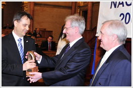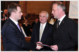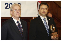 Horváth Attila, ügyvezető igazgató, dr. Sólyom László, köztársasági elnök és Dr. Molnár Károly, miniszter, a zsűri elnöke