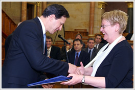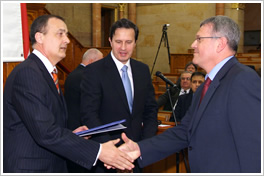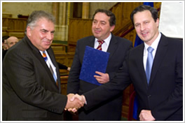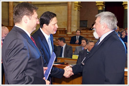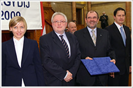 Parragh László, elnök, Varga István, miniszter, a zsűri elnöke és Dr. Hegedűs Lajos, vezérigazgató