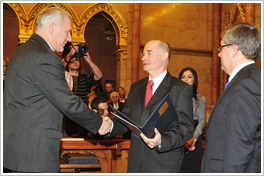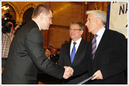 Schmitt Pál, köztársasági elnök, Matolcsy György, nemzetgazdasági miniszter, a zsűri elnöke és Bagaméry István, ügyvezető igazgató