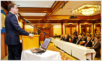 Az előadás célja volt, hogy áttekintést nyújtson, ahogyan az életünk a születéstől a halálig egy íven fut végig. Az egyik végpont a születés, öröm és boldogság. A másik végpont a halál, mely a mai legelterjedtebb felfogás szerint csak kudarc és szenvedés. A halál, súlyos betegség nem fér bele mai sikerorientált életünkbe. Az őszinte kommunikáció a halálról, haldoklásról legtöbbször még ma is tabu téma. A helyszínen készült videó az alábbi linkre kattintva elérhető. A 2011/2012-es tanév utolsó MEET THE SCIENTIST tudomány-népszerűsítő állomása március 30-án, a gyöngyösi Berze Nagy János Gimnáziumban volt. Dr. Váradi András, az MTA Enzimológiai Intézetének tudományos tanácsadója (korábbi Fulbright-ösztöndíjas) a "Gének - betegségek -állatmodellek - terápia" címmel tartott előadást. A gén-betegség összefüggések felismerése a gén által kódolt fehérje funkciójának feltárása révén elvezet a betegség kialakulásának, élettani okainak jobb megértéséhez, és remélhetőleg a kór gyógyításához. Az ilyen jellegű kutatásokban nagy jelentőségük van a megfelelő kísérleti modellek - elsősorban állatmodellek - létrehozásának. Mindezt saját kutatási téma segítségével tárta az előadó a diákok elé, amely során egy, az érfali és az egész testben kiterjedten előforduló puha-szöveti meszesedés és a májban, a sejtek külső membránjában (nem megfelelően) működő transzporterfehérje kapcsolatát kutatják. A helyszínen készült videó az alábbi linkre kattintva elérhető. Az előadások után a Csodák Palotája munkatársa mindhárom helyszínen érdekes kísérleteket mutatott be a fiataloknak. Közös Cél: A VALÓDI INNOVÁCIÓ 2. A Direct-Line Kft. "Közös cél: a valódi innováció 2." című konferenciája 2012. március 22-én, Dunaharasztiban került megrendezésre. Szövetségünket Deme Gábor alelnök képviselte. A rendezvényt Dr. Reith János, a Direct-Line Kft. ügyvezetője nyitotta meg. A Nemzetgazdasági Minisztériumot Dr. Nikodémus Antal főosztályvezető képviselte. Előadásában ismertette az elmúlt év problémáit, nehézségeit, s bemutatta a várható innovációs forrásokat, lehetőségeket. Fonyó Attila osztályvezető a Nemzeti Erőforrás Minisztérium képviseletében kiemelte azokat a várható európai forrásokat, amelyek véleménye szerint a felsőoktatási szféra innovációs potenciálját tudják majd javítani. Nagy érdeklődés kísérte Dr. Németh Gábor, a Szellemi Tulajdon Nemzeti Hivatala igazgatójának előadását, aki a kutatás-fejlesztés minősítési eljárásáról beszélt. Ismertette az eljárás menetét, a minősítés szempontjait és díjait, illetve azokat az eseteket, amelyek során a minősítés felhasználható. A szünetet követően Dr. Reith János a vállalati-, ipari szféra szemszögéből mutatta be az innovációt terhelő problémákat. Rámutatott, hogy az innovációs folyamatok egyik legnagyobb gátja a bürokrácia, s javaslataiban számos innovációt élénkítő lépést ajánlott a döntéshozók figyelmébe. Deme Gábor, a MISZ alelnöke a sikeres, innovatív kkv-k tulajdonságairól tartott előadást. A siker receptje mellett megmutatta azokat a jellemző buktatókat is, amelyek a kezdetben sikeres innovatív vállalkozások fejlődésének gátjává válhatnak. Dr. Inzelt Péter, az MTA Számítástechnikai és Automatizálási Kutatóintézetének igazgatója előadásában kiemelte a bürokráciában rejlő veszélyeket, s ő is hangsúlyozta a közvetlen vállalati-kutatóközponti együttműködések fontosságát. Az előadások sorát Dr. Kovács Kálmán zárta, aki a Budapesti Műszaki- és Gazdaságtudományi Egyetem innovációs programjairól beszélt. Felhívta a figyelmet a közép-magyarországi régiót sújtó pályázati hátrányokra, ill. az egyetemek közötti együttműködések fontosságára annak érdekében, hogy a jövőbeni európai pályázatokon sikereket érhessünk el. A konferencia előadásai elérhetőek az alábbi linken. Baross Gábor Programzáró Konferencia A Magyar Innovációs Szövetség Dél-Dunántúli Regionális Képviselete 2012. március 22-én tartotta Pécsett soron következő találkozóját, amely egyben a MISZ által 2010 februárjában benyújtott és megnyert Baross Gábor Program projektjének záró-konferenciája is volt. A záró-konferenciára meghívott vendége Dr. Nikodémus Antal, a Nemzetgazdasági Minisztérium Innovációs és K+F Főosztályának vezetője volt, aki tájékoztatást adott a meghívottaknak a vállalkozások innovációs járulékaiból keletkező források felhasználásáról. Ezt követően megkérdezte a regionális vállalkozások véleményét, és ígéretet tett arra, hogy azokat részben figyelembe veszik az új pályázati kiírásoknál. Küldöttgyűlés Miskolcon A Borsod-Abaúj-Zemplén Megyei Kereskedelmi és Iparkamara (BOKIK) 2012. március 22-én tartotta Miskolcon, a Népkerti Vigadó Étteremben XL. küldöttgyűlését, melyen Szövetségünket meghívott vendégként dr. Siposs István, regionális igazgató képviselte. A küldöttgyűlésen Bihall Tamás elnök köszöntő szavai után dr. Barkóczy István (FUX Zrt. vezérigazgató, Választmányunk tagja) vette át a levezető elnök szerepét és megszavaztatta a küldöttgyűlés tisztségviselőinek névsorát. A rendezvény a BAZ megyei Kormányhivatal és a BOKIK közötti együttműködési megállapodás ünnepélyes aláírásával kezdődött. A megállapodást Demeter Ervin kormánymegbízott és Bihall Tamás elnök látták el kézjegyükkel. Ezt követően Demeter Ervin a közigazgatás újjászervezéséről, majd Dunai Péter (MKIK főtitkár) aktuális kamarai kérdésekről, a kamarai rendszer továbbfejlesztéséről tartott előadást. Az előadásokat követő hozzászólások elé