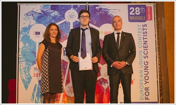 Hírek | Magyar Innovációs Szövetség Különdíj az EU Fiatal Tudósok Versenyén Az Európa Unió által évente szervezett, legjelentősebb és legrangosabb tehetség-kutató és -kiválasztó versenyt, a Fiatal Tudósok Versenyét, melyre a világ 38 országából érkeztek fiatalok, az idén szeptember 15. és 19. között Brüsszelben rendezték meg, ahol az egyik magyar fiatal megkapta a különdíjat A több tízezer, 15-20 év közötti fiatalból kiválasztott döntősök között Magyarországot a Magyar Innovációs Szövetség által, a 2015/2016. évben megrendezett 25. Ifjúsági Tudományos és Innovációs Tehetségkutató Verseny három első díjas pályázatának készítője képviselte. A magyar delegációt Ivánka Gábor, bírálóbizottsági tag vezette. A négy lépcsős ifjú tudósok versenyének első két fordulóját a résztvevő országok bonyolítják, ahonnan a kiválasztott legjobb 2-4 pályamunkáról a nemzetközi bírálóbizottság mond véleményt. Ezt követően a kiválasztottak háromnapos, kiállítással egybekötött prezentáción vesznek részt, ahol a nemzetközi zsűri személyes konzultációk során alakítja ki a végleges sorrendet. Az idei döntőre 38 ország versenyzőit hívták meg. A brüsszeli döntőn 100 projekt közül, a 18 éves fiatal, Udvardi Péter (a budapesti XIV. kerületi Szent István Gimnázium végzős diákja) kutatómunkája részesült a különdíjban, ennek eredményeként többek között egy hamburgi kutatóintézet (XFEL - the European X-Ray Free-Electron Laser Facility) egy hétig vendégül látja Pétert. A díjat Lina Tomasella, tudós, a zsűri olasz elnöke és dr. Patrick Geeraert, az EIROFORUM egyik vezetője adta át.