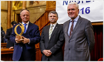 Hírek | Magyar Innovációs Szövetség XXV. Magyar Innovációs Nagydíj ünnepélyes átadása 2017. március 29-én, az Országházban adták át a 2016. évi innovációs díjakat. A Himnusz elhangzása után Dr. Szabó Gábor, a Magyar Innovációs Szövetség elnöke nyitotta meg az ünnepséget. A résztvevőket először Kövér László, az Országgyűlés elnöke köszöntötte: "...Napjainkban a szűkebb és tágabb fizikai, gazdasági, társadalmi és természeti környezetünk eddig még soha nem tapasztalt gyorsasággal változik. Ehhez a viharos változáshoz mindenkinek - az egész társadalomnak - igazodnia kell a maga módján..." "...Szakértők szerint az európai gazdasági növekedésnek közel a kétharmada műszaki innováción alapul, ez kellene, hogy számunkra is, a magyar gazdaság számára is irányt mutasson. A kormány elkötelezte magát arra, hogy a kutatás-fejlesztéssel és innovációval kapcsolatos forrásokat, támogatásokat évről évre növeli. Elkötelezte magát arra, hogy - a növekedési pályára állított, stabil fejlődést mutató gazdaságon túl - egy átláthatóbb és szilárdabb támogatási, finanszírozási rendszerrel teszi tervezhetőbbé a jövőt az innováció szereplői számára. A nemzeti össztermékben a tíz esztendővel ezelőtti 0,96 százalék kutatási és fejlesztési ráfordítások aránya ebben az évben elérheti a 1,5 százalékot, ami nagyságrendileg 500 milliárd forintot jelent. Ez azt jelzi, hogy nemcsak a szavak, de a számok is biztatóan alakulnak a magyar innováció területén. Ennek jegyében született meg 2015 januárjában a Nemzeti Kutatási, Fejlesztési és Innovációs Hivatal, biztosítván a kutatási és innovációs szakpolitikák kormányzati szintű összehangolását, az állami finanszírozás stabil intézményi hátterét..." "...Az idei Innovációs Nagydíj pályázati kiírásra 38 pályamű érkezett be. Összességében lefedik a magyar gazdaság szinte teljes szerkezetét: a mezőgazdaságtól az orvostudományig, az élelmiszeripartól a villamos iparig, a műanyagipartól a járműiparig, a hulladékgazdálkodástól a szennyvíztisztításig. S ami ugyancsak nagyon örvendetes: a pályamunkák között a jelen és a jövő olyan innovatív területein mozgók is nagy számban szerepelnek, mint például a digitalizált szolgálatvezérlés és üzleti intelligencia; a radiológiai képalkotás; a 3D-s modellezés, tervezés és szoftverfejlesztés; vagy például az űrtávközlés. Önöknek köszönhetően van esély arra, hogy külföldi barátaink a jövőben megállapíthassák: a műszaki tudományok és innováció területén nemcsak a XX. századot csinálták Budapesten, hanem a XXI. századnak is a nagy részét..."